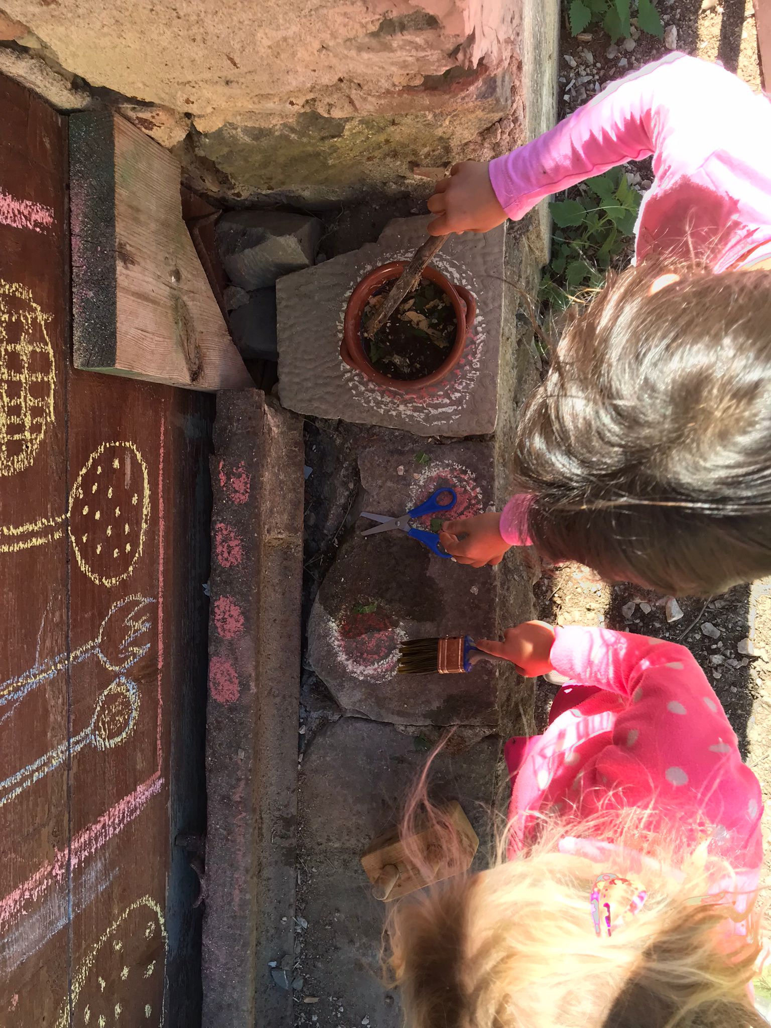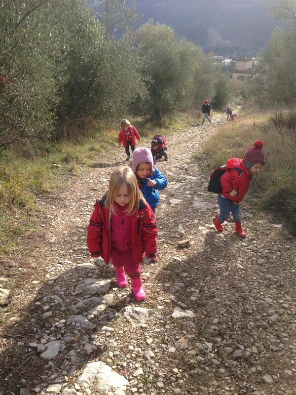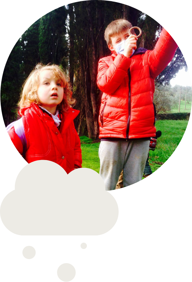giochi di socializzazione, spuntino, passeggiata nel bosco o laboratorio di manipolazione (creta, stoffa, carta…), pranzo in giardino, ricreazione con musica, disegno, lettura, gioco libero all’aperto.