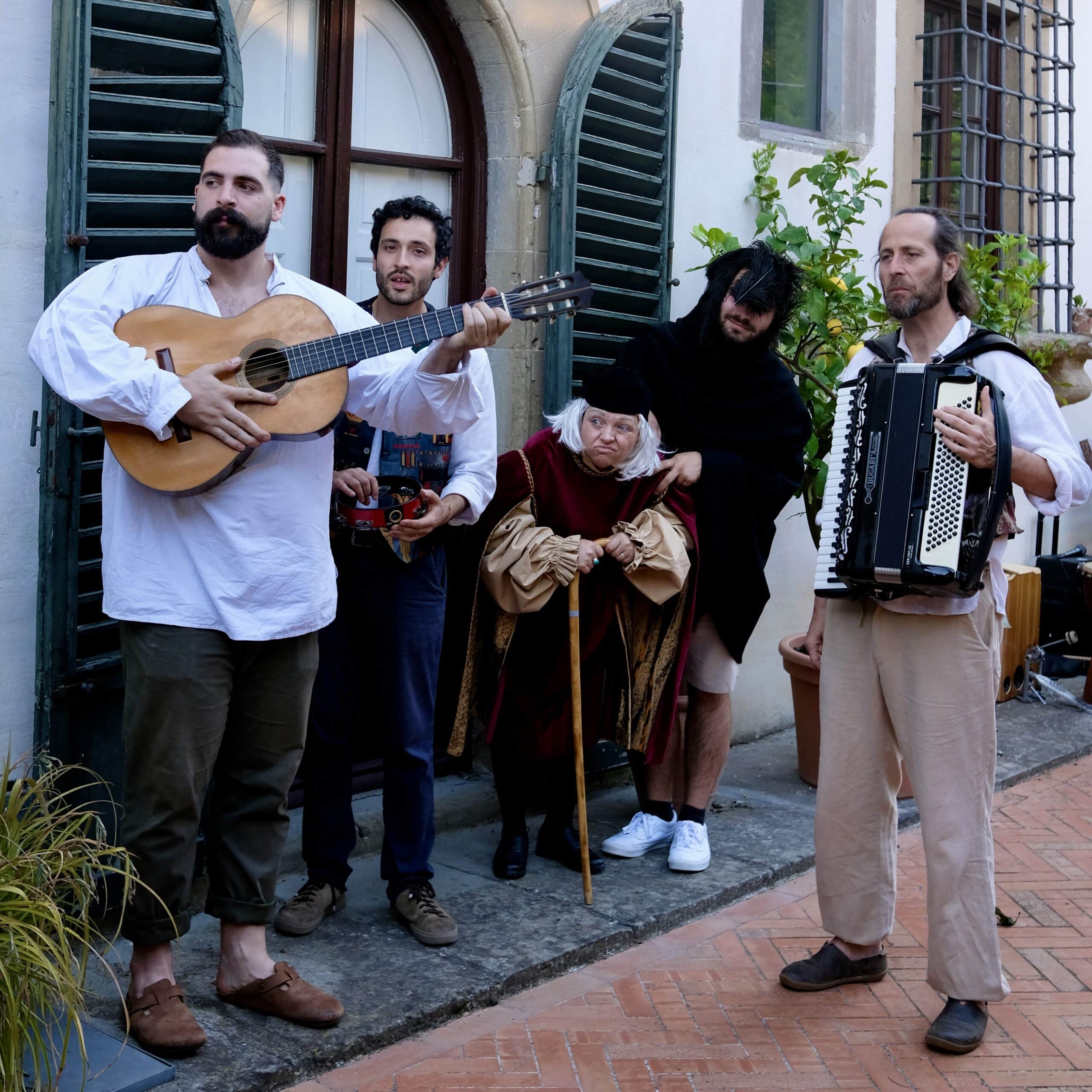 Il progetto di ricerca sul Decameron nasce nel 2022 in casa Teatro Solare, e si propone di portare l’opera boccaccesca ora in un teatro, ora in un giardino, ora in una piazza con un tamburo per renderlo piacevole e accessibile a tutti. A questo fine, il testo boccaccesco si presta perfettamente, con le sue novelle trasmesse di bocca in bocca da ogni angolo del mondo. Protagonista un gruppo di giovani che cantano e suonano per il solo piacere di raccontare…